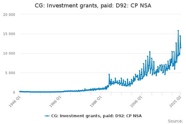 Download this time seriesCG: Investment grants, paid: D92: CP NSA