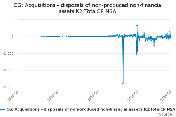 Download this time seriesCG: Acquisitions - disposals of non-produced non-financial assets:K2:TotalCP NSA