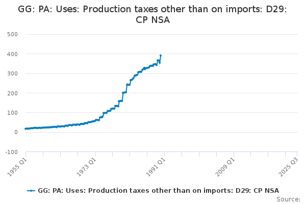 Download this time seriesGG: PA: Uses: Production taxes other than on imports: D29: CP NSA
