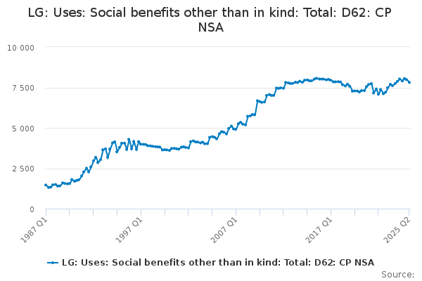 Download this time seriesLG: Uses: Social benefits other than in kind: Total: D62: CP NSA
