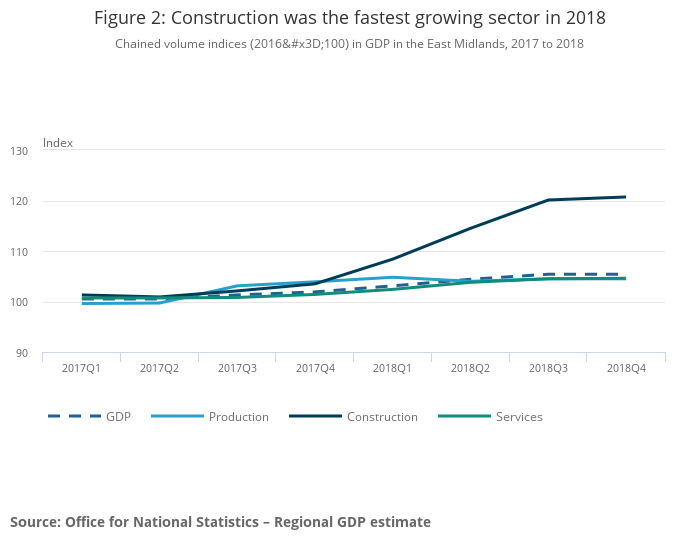Gross domestic product growth in the East Midlands was 0.0% in Quarter 4 (Oct to Dec) 2018.