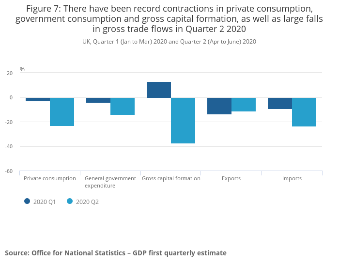 There have been large movements in all types of expenditure in Quarter 2 (Apr to June) 2020, most notably private consumption, which accounted for more than 70% of the fall in gross domestic product (GDP) in the second quarter (Figure 7).