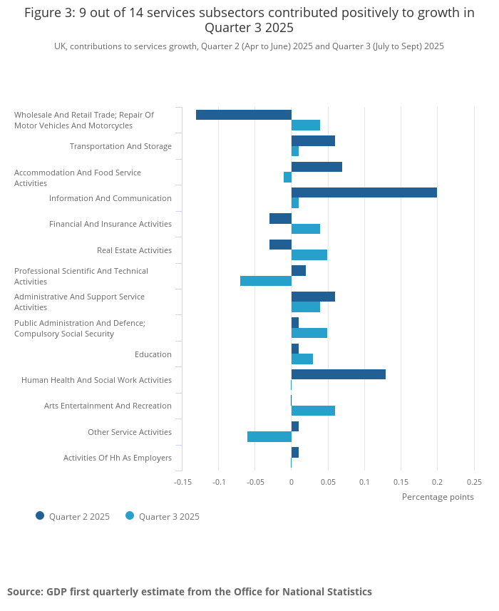 Figure 3: 9 out of 14 services subsectors contributed positively to growth in Quarter 3 2025