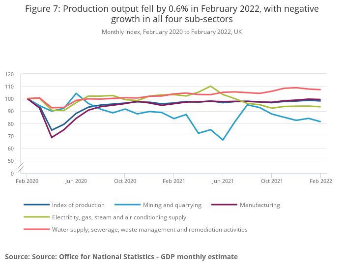 More detailed breakdowns on production are available in the Index of Production, UK: February 2022.