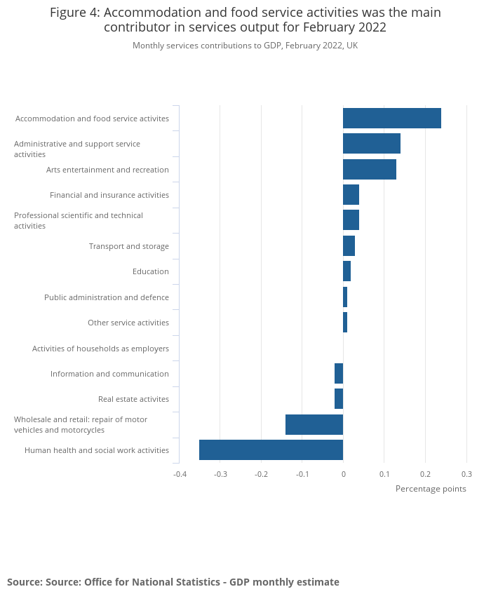 More detailed breakdowns on services are available in the Index of Services, UK: February 2022