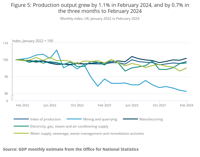 More detailed breakdowns on production are available in the Index of Production, UK: February 2024.