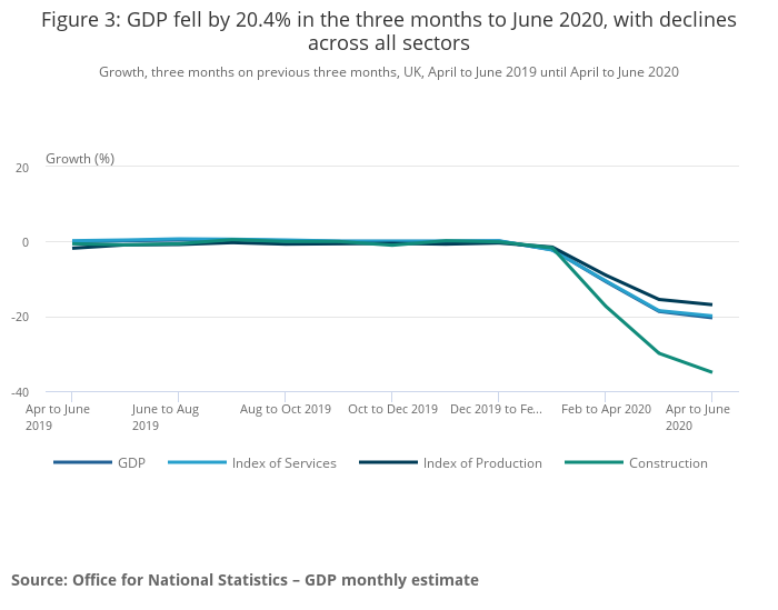 1. UK GDP fell by 20.4% in Quarter 2 (Apr to June) 2020