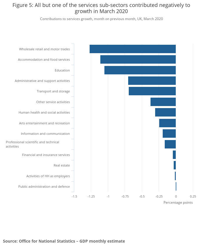 Figure 5: All but one of the services sub-sectors contributed negatively to growth in March 2020