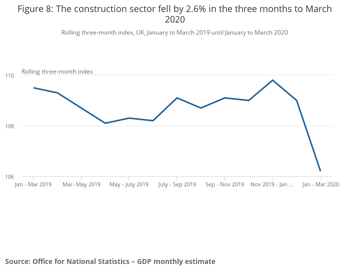 - Output in the construction sector fell by 2.6% in Quarter 1 2020