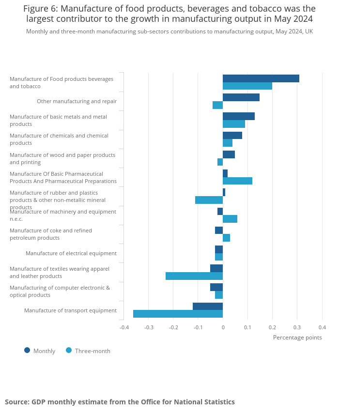 Figure 6: Manufacture of food products, beverages and tobacco was the largest contributor to the growth in manufacturing output in May 2024