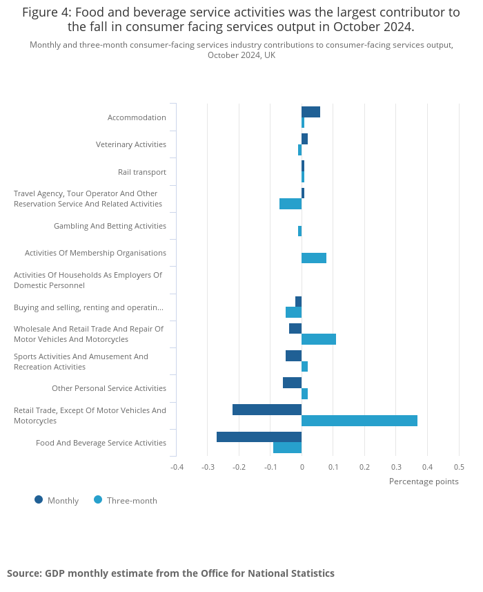 Figure 4: Food and beverage service activities was the largest contributor to the fall in consumer facing services output in October 2024.