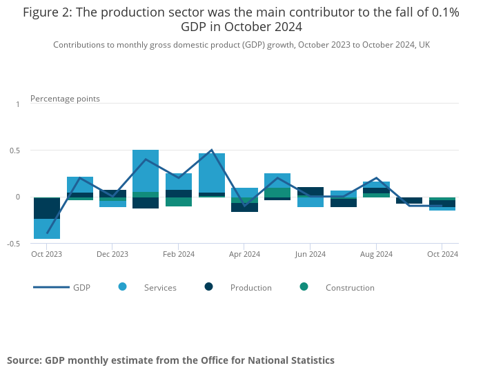 Figure 2: The production sector was the main contributor to the fall of 0.1% GDP in October 2024