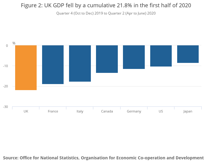Figure 2: UK GDP fell by a cumulative 21.8% in the first half of 2020
