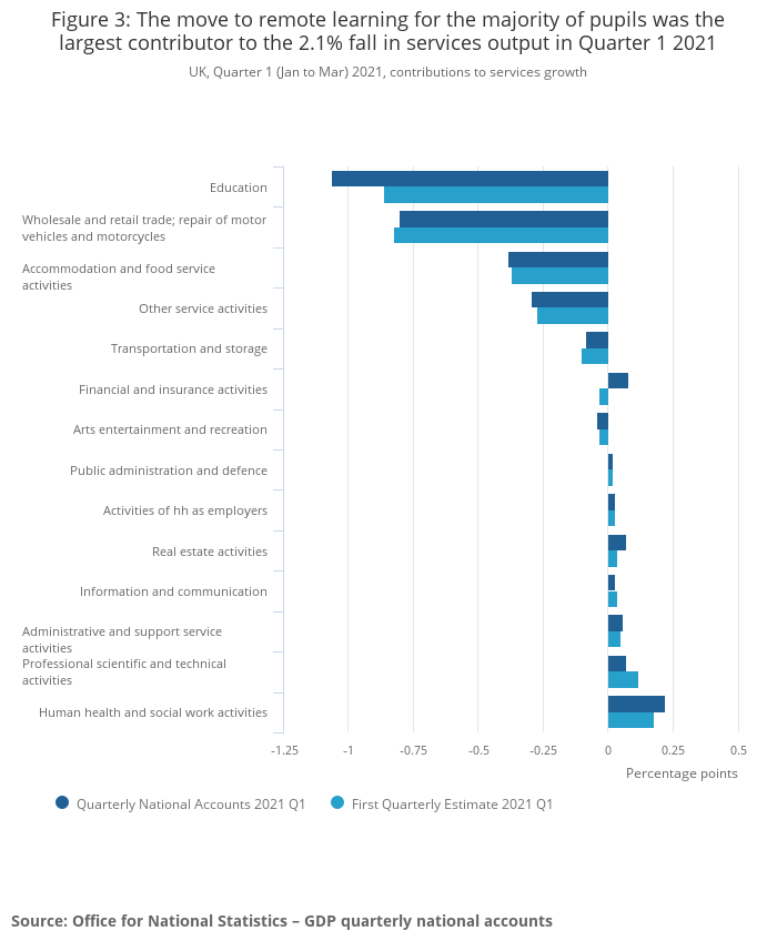 Figure 3: The move to remote learning for the majority of pupils was the largest contributor to the 2.1% fall in services output in Quarter 1 2021