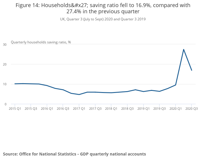 Download this chart Figure 14: Households' saving ratio fell to 16.9%, compared with 27.4% in the previous quarter