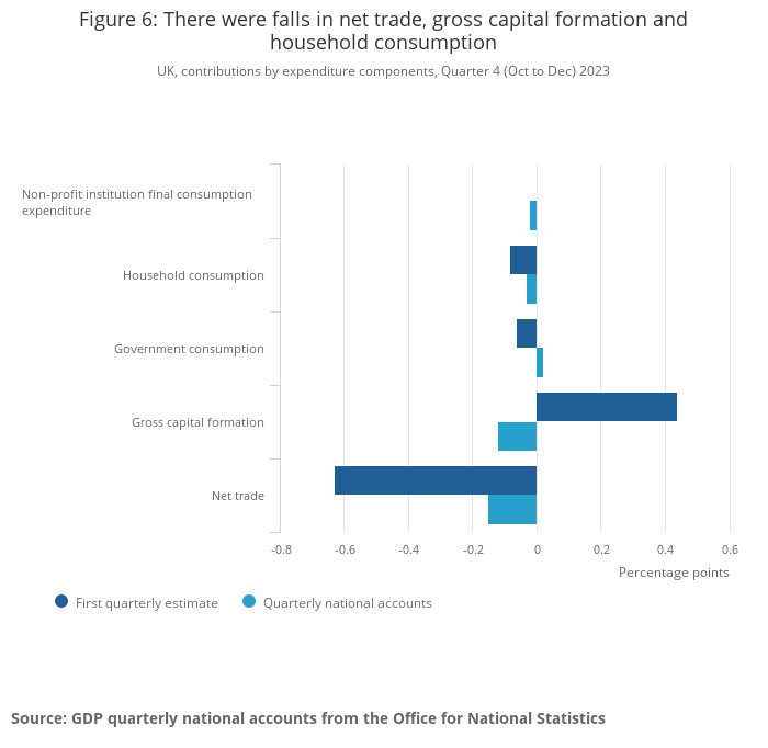 UK gross domestic product (GDP) is estimated to have fallen by an unrevised 0.3% in Quarter 4 (Oct to Dec) 2023, following an unrevised fall of 0.1% in the previous quarter.