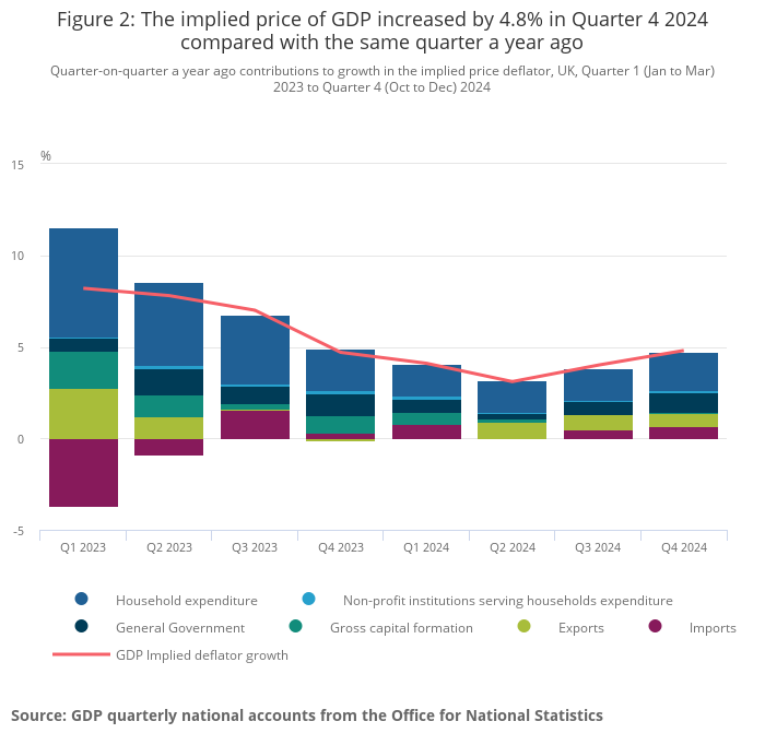 Download this chart Figure 2: The implied price of GDP increased by 4.8% in Quarter 4 2024 compared with the same quarter a year ago
