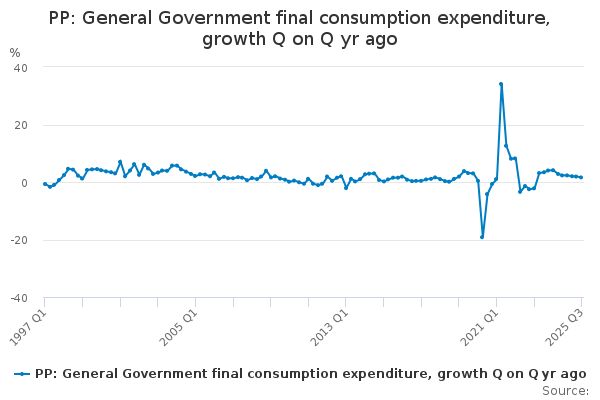Download this time seriesPP: General Government final consumption expenditure, growth Q on Q yr ago