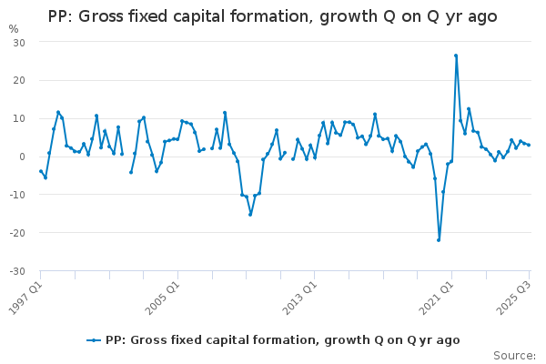 Download this time seriesPP: Gross fixed capital formation, growth Q on Q yr ago