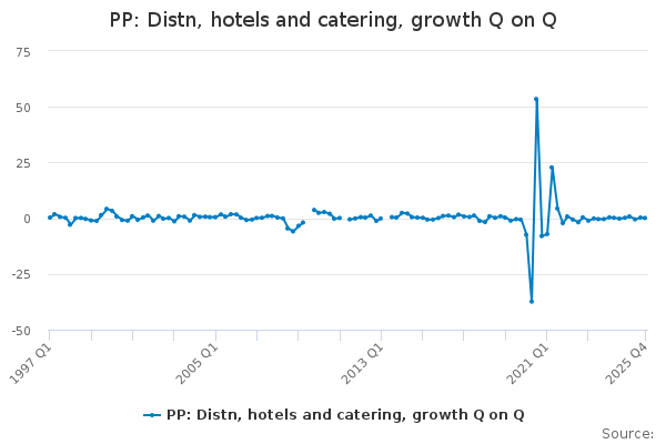 Download this time seriesPP: Distn, hotels and catering, growth Q on Q