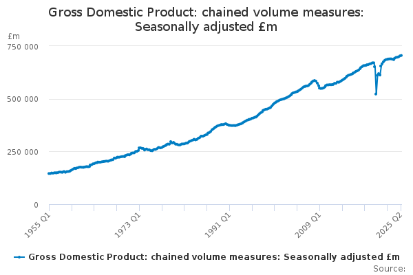 Download this time seriesGross Domestic Product: chained volume measures: Seasonally adjusted £m