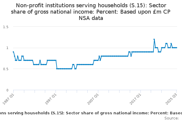 Download this time seriesNon-profit institutions serving households (S.15): Sector share of gross national income: Percent: Based upon £m CP NSA data