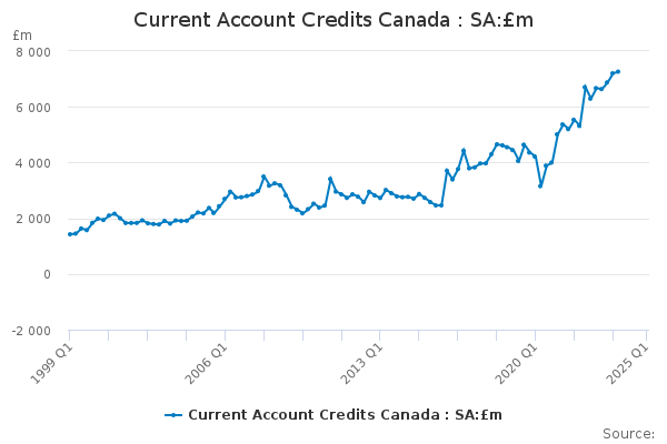 Download this time seriesCurrent Account Credits Canada : SA:£m