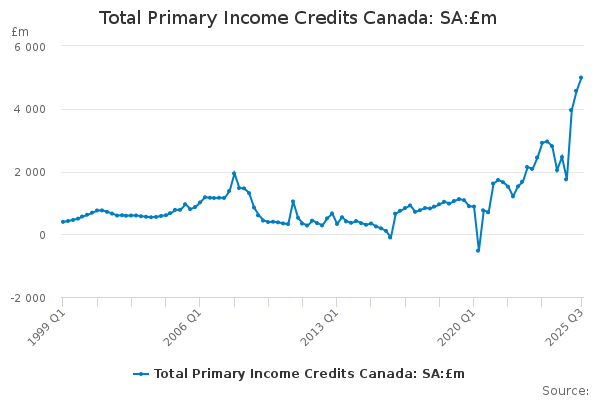 Download this time seriesTotal Primary Income Credits Canada: SA:£m