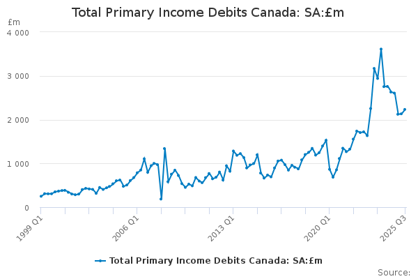 Download this time seriesTotal Primary Income Debits Canada: SA:£m