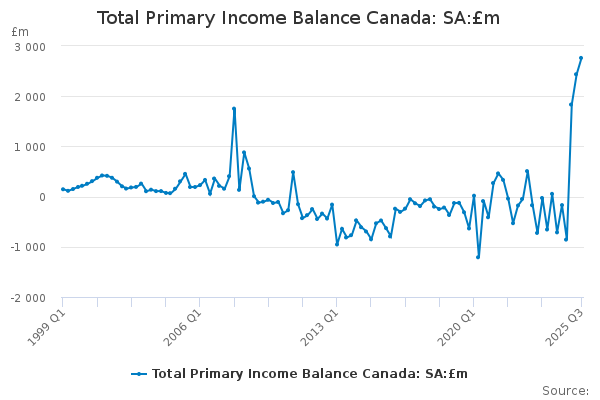 Download this time seriesTotal Primary Income Balance Canada: SA:£m