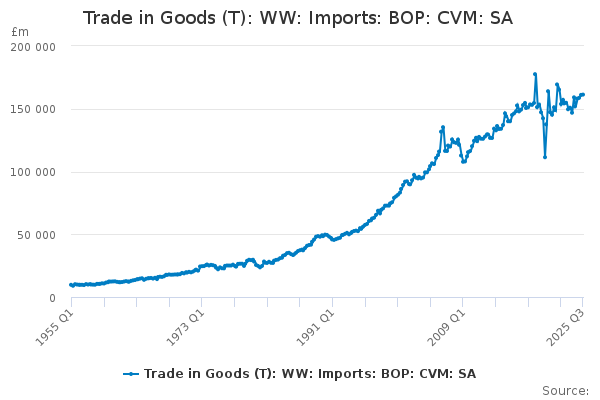 Download this time seriesTrade in Goods (T): WW: Imports: BOP: CVM: SA