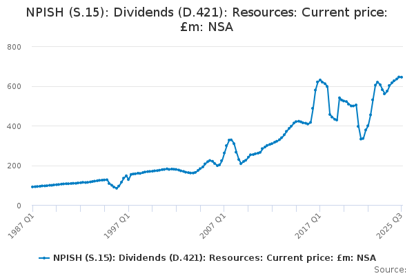 Download this time seriesNPISH (S.15): Dividends (D.421): Resources: Current price: £m: NSA