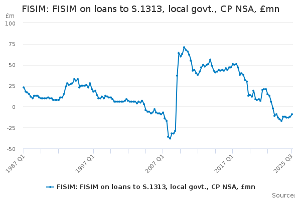 Download this time seriesFISIM: FISIM on loans to S.1313, local govt., CP NSA, £mn