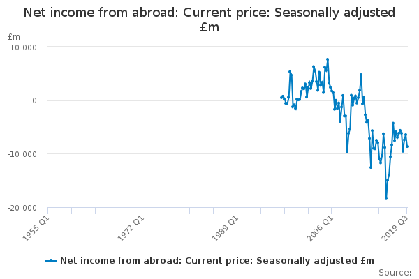 An error has been identified within the Trade in Services by country split and impacts tables B6, B6A, B6B, B6B_2, B6B_3, B6C, B6C_2, B6C_3 within the ‘UK Economic Accounts: balance of payments - current account’ publication tables as well as the corresponding time series. This was caused by a processing error within Trade and does not affect the whole world totals for Trade and the current account. This error has resulted in the below annual impacts: Trade in services for Russia; exports, imports and balance for 2015 and will indicatively increase by £1.0 billion for exports, £0.3 billion for imports and £0.7 billion for the balance. This will also impact total trade in goods and services and the total current account for Russia. Trade in services for USA, exports and balance for the years 2010 to 2018 and has indicative average change of £0.4 billion per year for exports and balance. This will also impact total trade in goods and services and the total current account for the USA. Trade in services for Hong Kong, exports and balance for 2012 and will indicatively decrease by £0.4 billion for exports and balance. This will also impact total trade in goods and services and the total current account for Hong Kong. Smaller impacts will also be seen for the other countries noted within these tables alongside the EU and EMU within the time period 1999 to 2018 for trade in services, total trade in goods and services and the total current account by country. Total trade in services and all other data in this release is not affected. The data has now been corrected we apologise for the inconvenience.