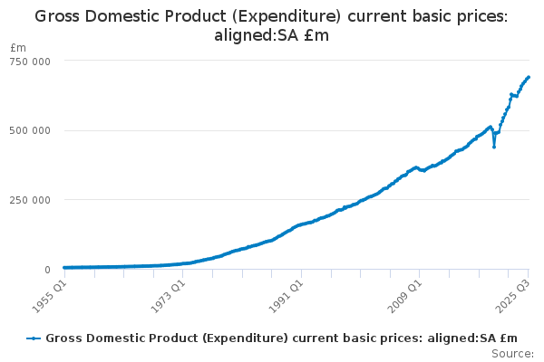Download this time seriesGross Domestic Product (Expenditure) current basic prices: aligned:SA £m