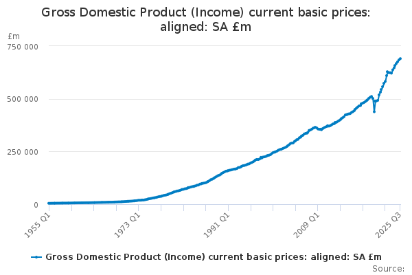 Download this time seriesGross Domestic Product (Income) current basic prices: aligned: SA £m