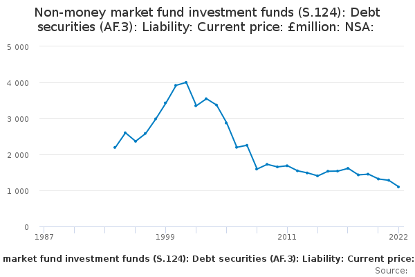 Download this time seriesNon-money market fund investment funds (S.124): Debt securities (AF.3): Liability: Current price: £million: NSA: