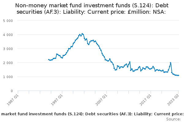 Download this time seriesNon-money market fund investment funds (S.124): Debt securities (AF.3): Liability: Current price: £million: NSA: