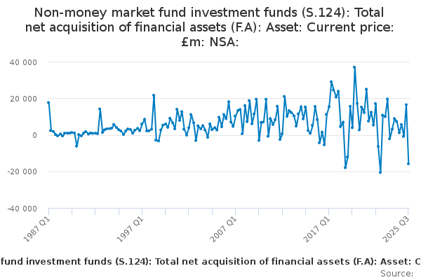 Download this time seriesNon-money market fund investment funds (S.124): Total net acquisition of financial assets (F.A): Asset: Current price: £m: NSA:
