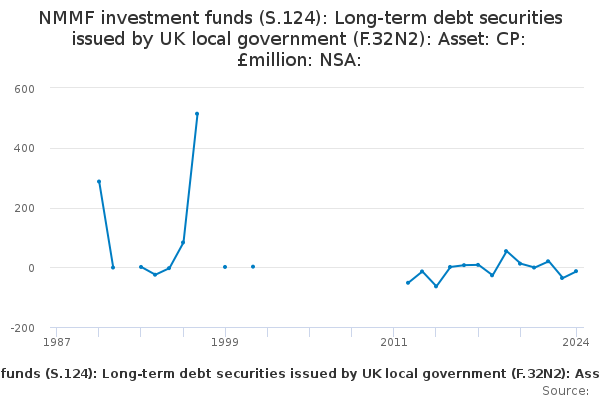 Download this time seriesNMMF investment funds (S.124): Long-term debt securities issued by UK local government (F.32N2): Asset: CP: £million: NSA: