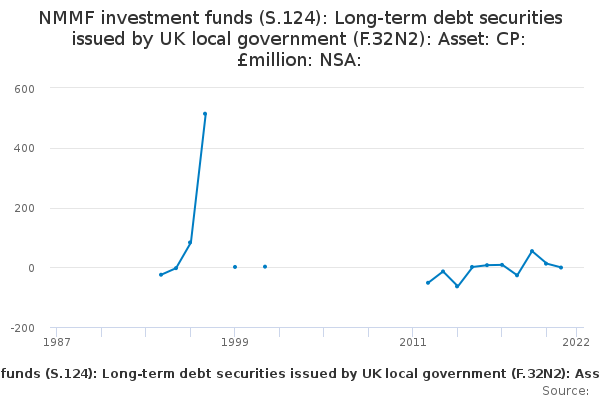 Download this time seriesNMMF investment funds (S.124): Long-term debt securities issued by UK local government (F.32N2): Asset: CP: £million: NSA: