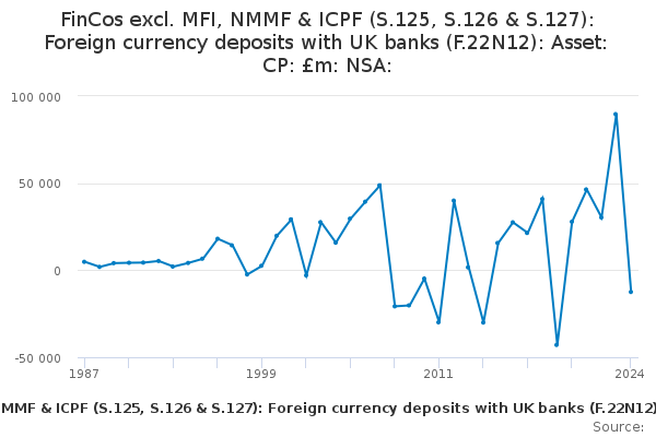 Download this time seriesFinCos excl. MFI, NMMF & ICPF (S.125, S.126 & S.127): Foreign currency deposits with UK banks (F.22N12): Asset: CP: £m: NSA: