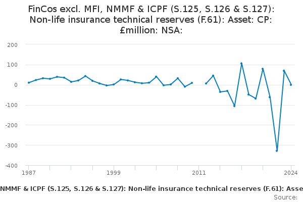 Download this time seriesFinCos excl. MFI, NMMF & ICPF (S.125, S.126 & S.127): Non-life insurance technical reserves (F.61): Asset: CP: £million: NSA:
