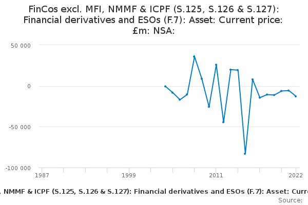Download this time seriesFinCos excl. MFI, NMMF & ICPF (S.125, S.126 & S.127): Financial derivatives and ESOs (F.7): Asset: Current price: £m: NSA: