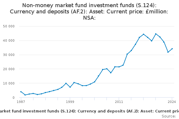 Download this time seriesNon-money market fund investment funds (S.124): Currency and deposits (AF.2): Asset: Current price: £million: NSA: