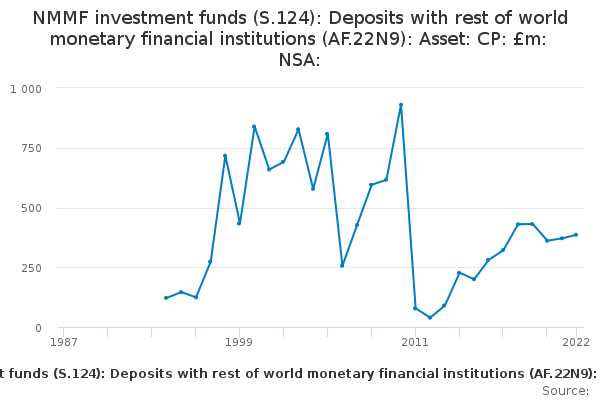 Download this time seriesNMMF investment funds (S.124): Deposits with rest of world monetary financial institutions (AF.22N9): Asset: CP: £m: NSA: