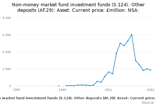 Download this time seriesNon-money market fund investment funds (S.124): Other deposits (AF.29): Asset: Current price: £million: NSA: