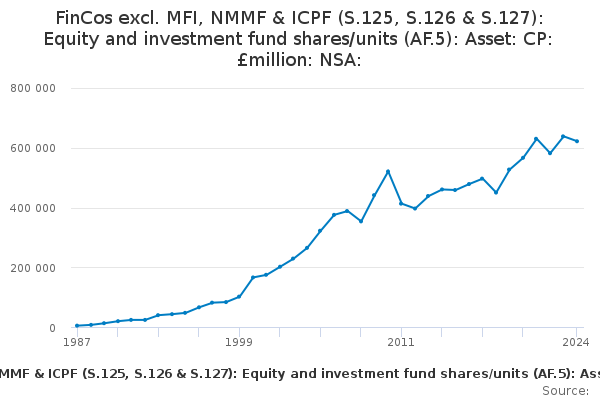 Download this time seriesFinCos excl. MFI, NMMF & ICPF (S.125, S.126 & S.127): Equity and investment fund shares/units (AF.5): Asset: CP: £million: NSA: