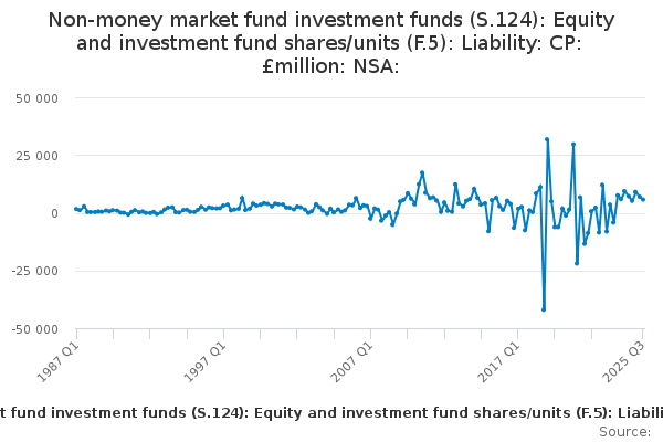 Download this time seriesNon-money market fund investment funds (S.124): Equity and investment fund shares/units (F.5): Liability: CP: £million: NSA: