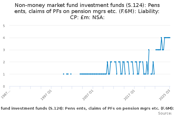 Download this time seriesNon-money market fund investment funds (S.124): Pens ents, claims of PFs on pension mgrs etc. (F.6M): Liability: CP: £m: NSA: